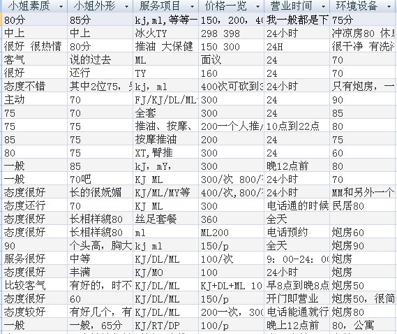 部分楼凤Q妹信息资料展示截图